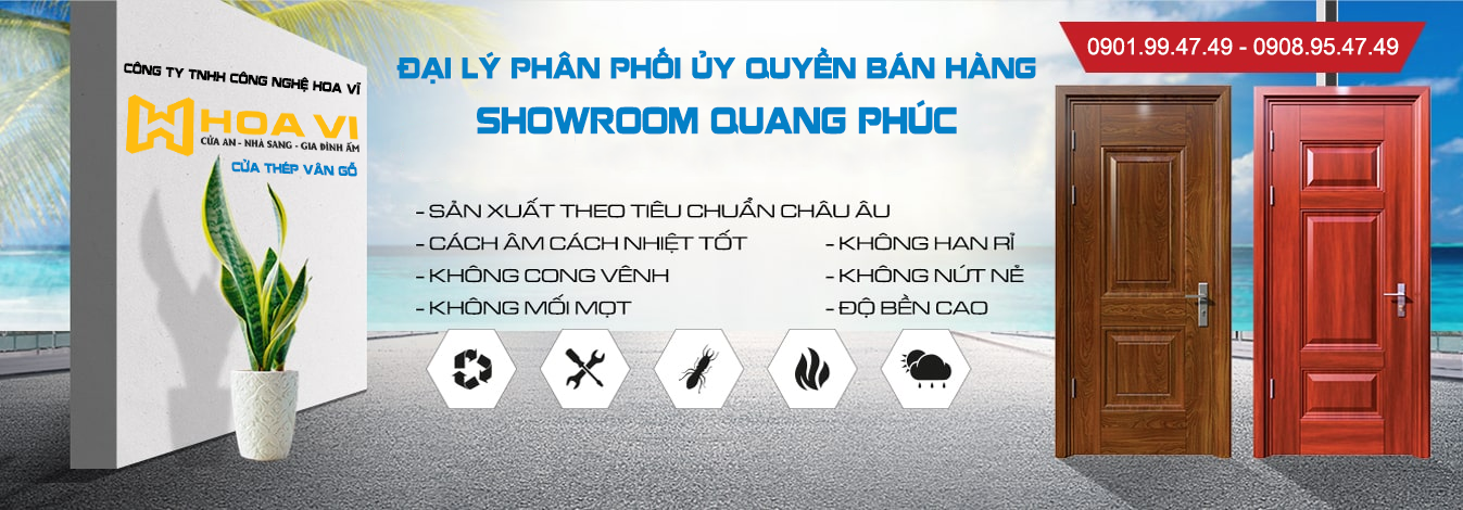 Showroom Quang Phúc là đơn vị chuyên phân phối Cửa Thép Vân Gỗ của Công ty TNHH công nghệ Hoa Vĩ . Thương hiệu của chúng tôi được cấp chứng nhận quản lý chất lượng quốc tế ISO9001. Sản phẩm chủ yếu là cửa vệ sinh nhôm vân gỗ, cửa thép vân gỗ, cửa thép an toàn chống trộm, cửa chống nhiệt chống cháy, cửa thép ra vào và nhiều sản phẩm khác.